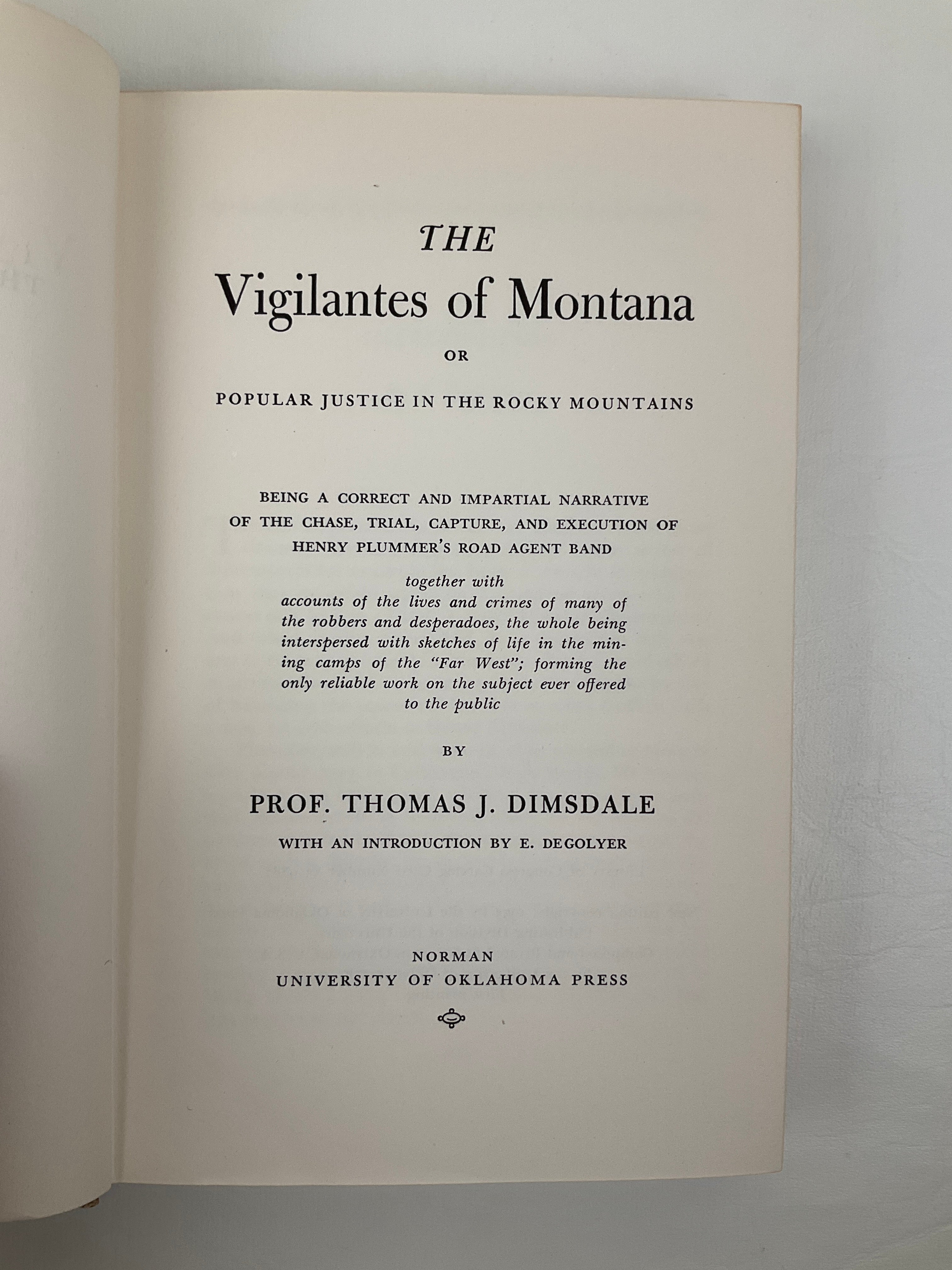 The Vigilantes of Montana Or Popular Justice In The Rocky Mountains : Being A Correct And Impartial Narrative Of The Chase, Trial, Capture And Execution Of Henry Plummer's Road Agent Band