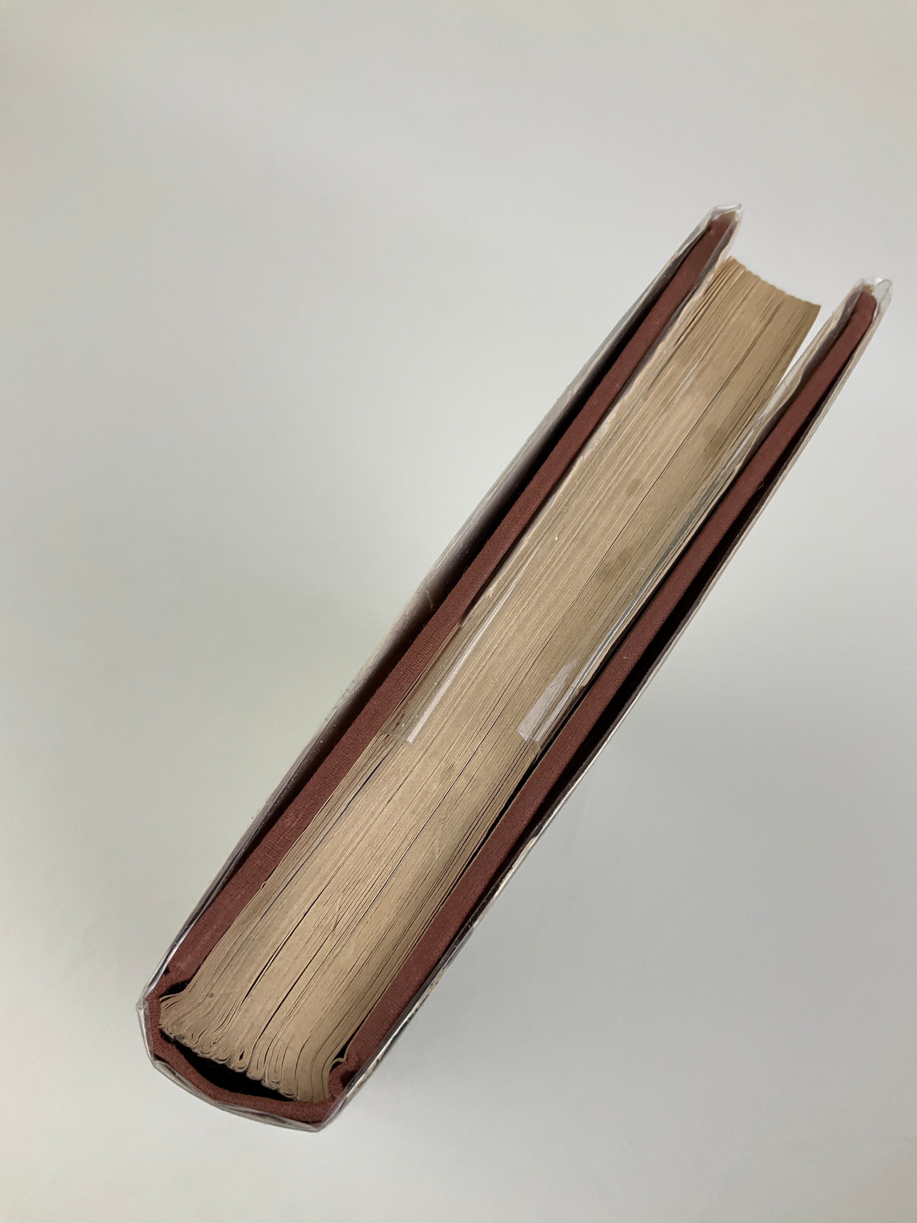 Upper fore-edge corner of the first twenty leaves faintly moisture-stained; tissue guard protecting the frontispiece with a short tear and crease; front pastedown stamped with bookseller’s coordinates. Boards flecked with paint. Dust jacket creased, torn, chipped, rubbed, and stained.