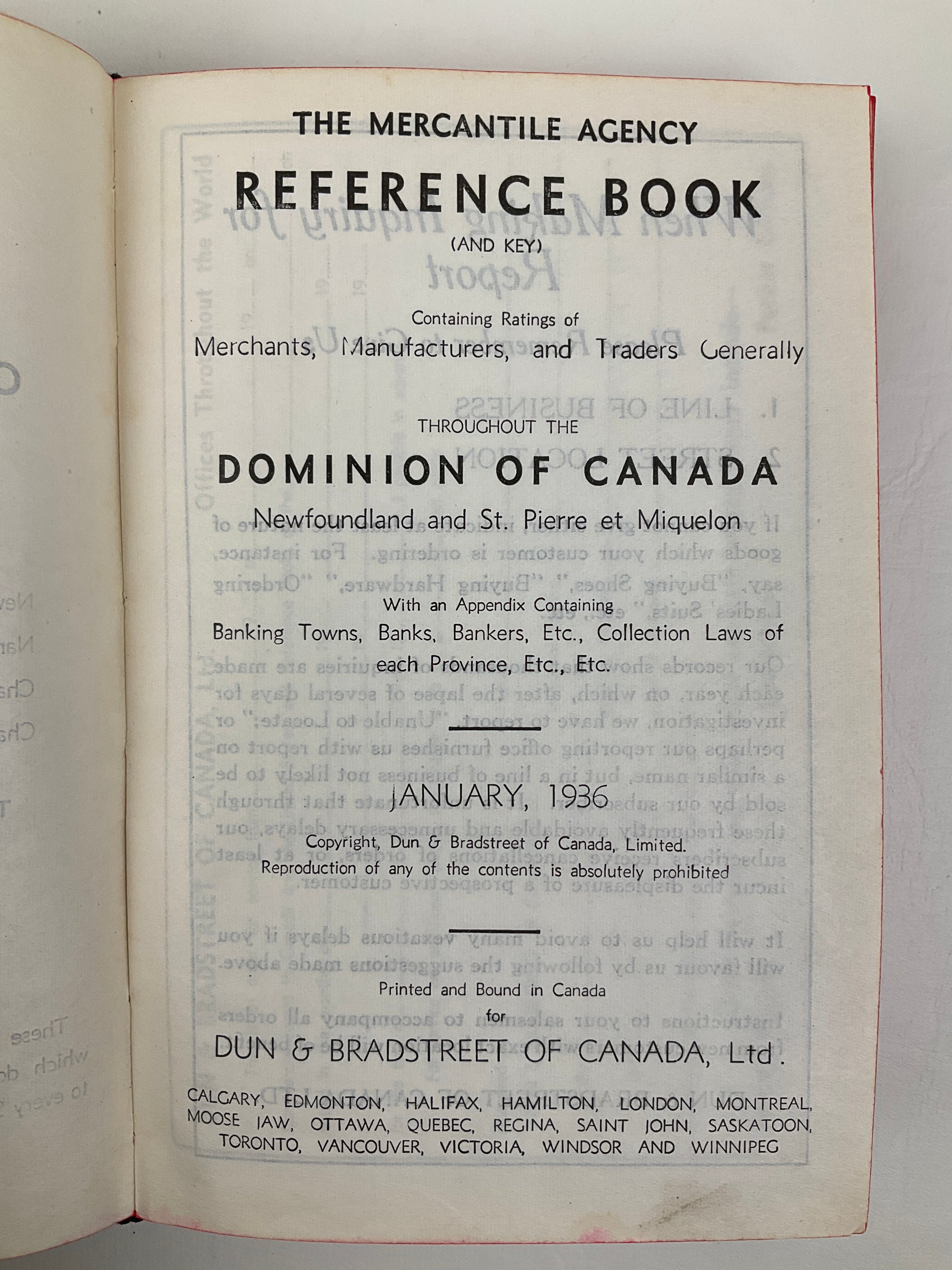 The Mercantile Agency Reference Book : Western Provinces Of Canada. January 1936 [Dun and Bradstreet]