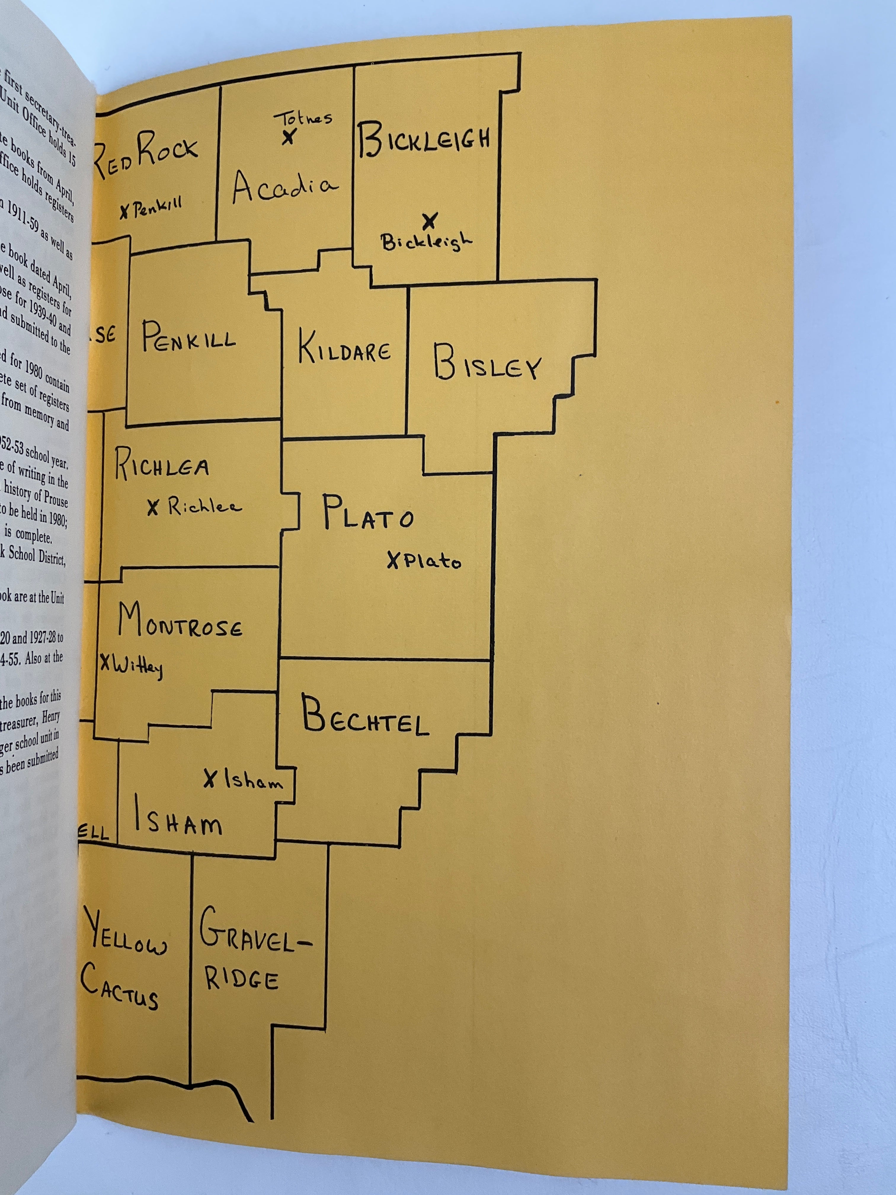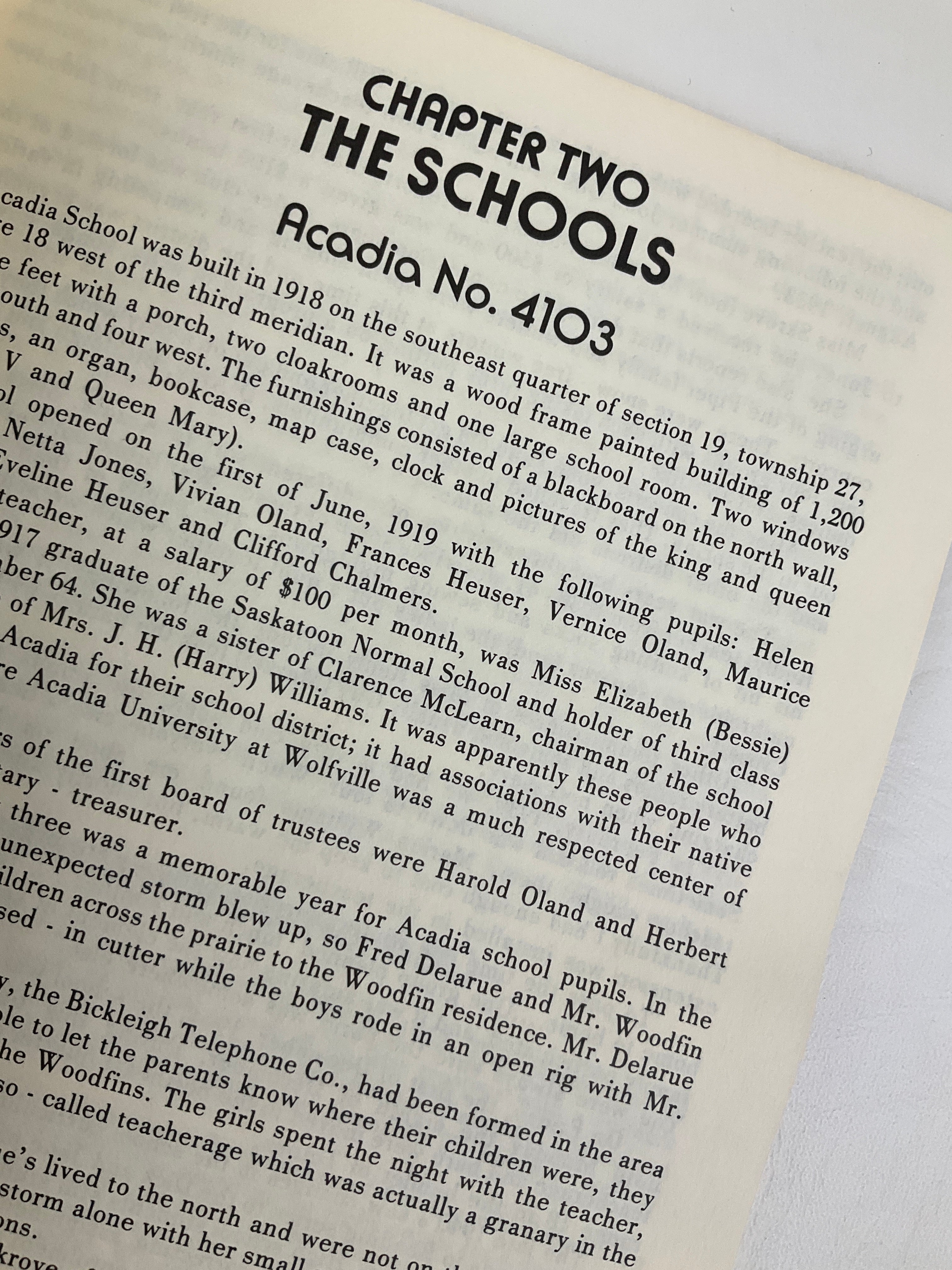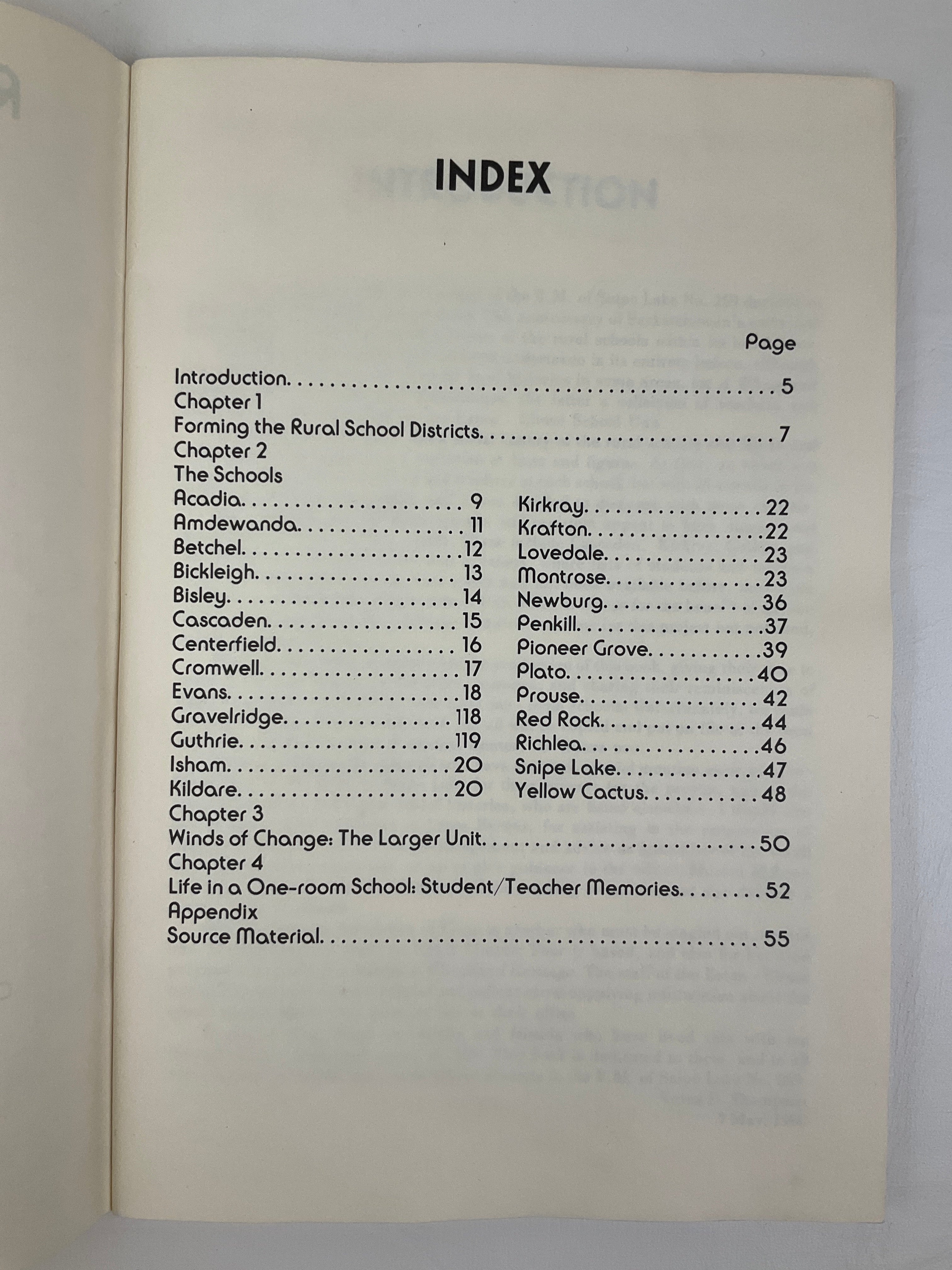 This small booklet was a project put forth by the R.M. of Snipe Lake No. 259 to mark the 75th anniversary of Saskatchewan's entry into Confederation. Its intention was to show a social history of what life was like in and around the rural schools. Districts included: Acadia, Amdewanda, Betchel, Bickleigh, Bisley, Cascaden, Centerfield, Cromwell, Evans, Gravelridge, Guthrie, Isham, Kildare, Kirkray, Krafton, Lovedale, Montrose, Newburg, Penkill, Pioneer Grove, Plato, Prouse, Red Rock, Richlea, Snipe Lake, and Yellow Cactus.