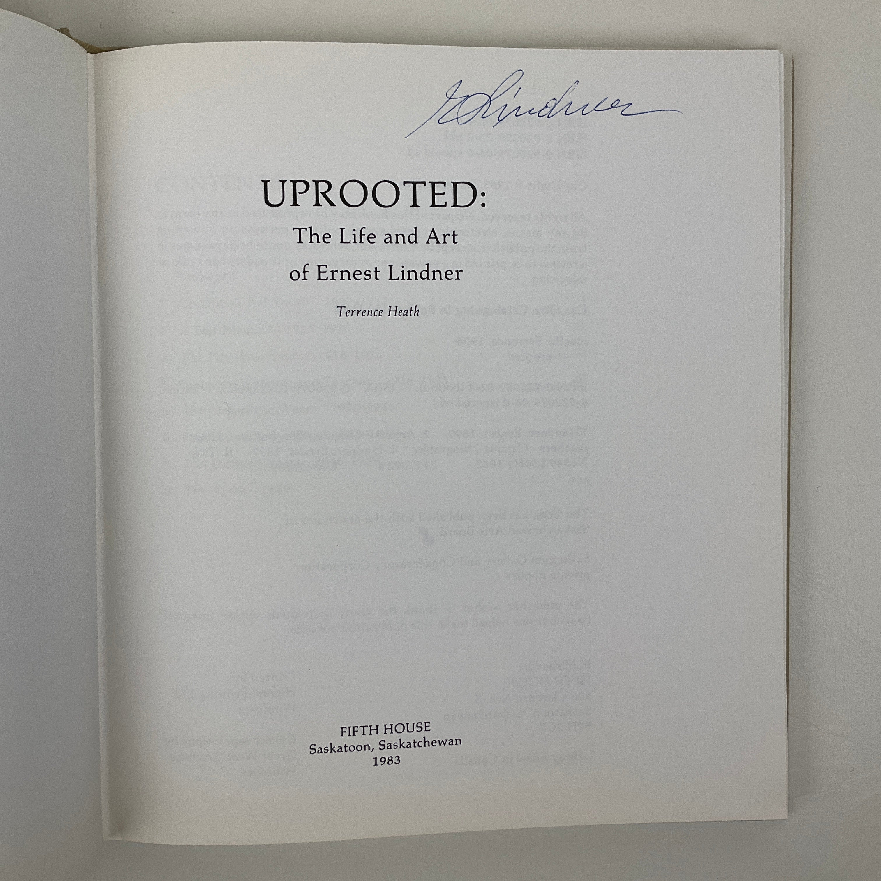 Uprooted: The Life and Art of Ernest Lindner is a biographical study of the Austrian-born Canadian artist Ernest Lindner (1897–1988). Born in Vienna, Lindner emigrated to Canada in 1926 and went on to establish a long and influential career in Saskatoon, spanning more than half a century.