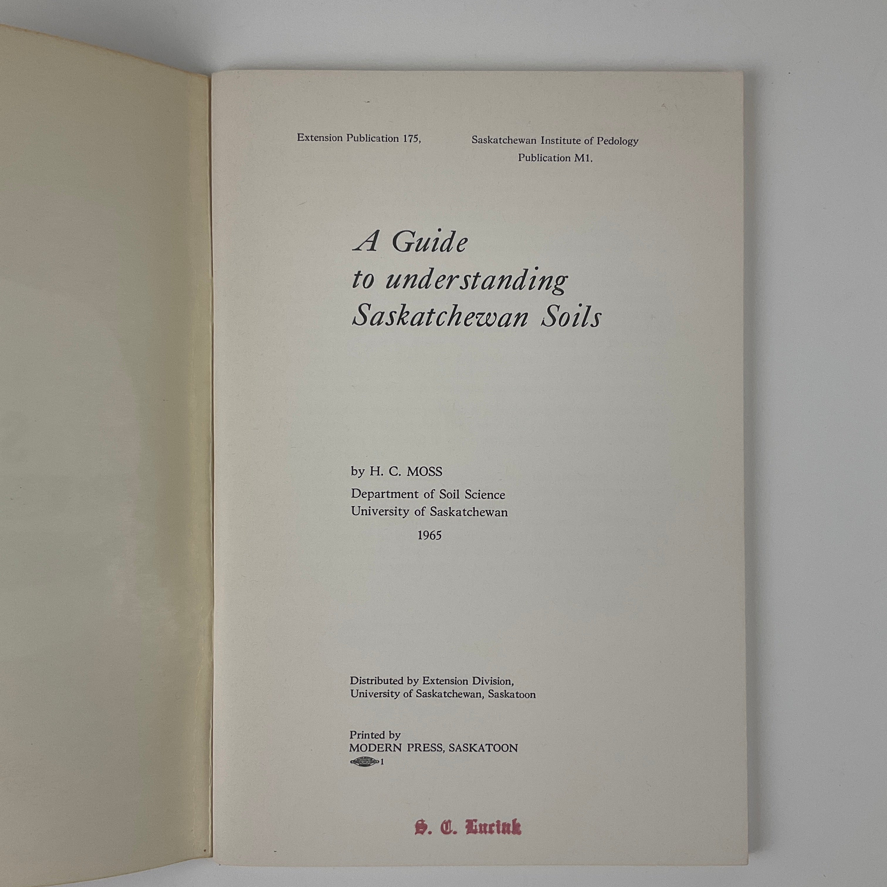Alongside John Mitchell and Jack S. Clayton, Harold C. Moss conducted soil surveys of Saskatchewan in the early/mid-1900s as a joint effort of the University of Saskatchewan and government bodies. In this slim volume, Moss provides an overview of soil profiling and soil profiles in the province. He explains how soils form, discusses the elements that make up a soil profile, and briefly outlines the National Soil Survey Committee’s classification system. The volume's largest section includes profiles of eight soil types in the province (including their desirability for agriculture).