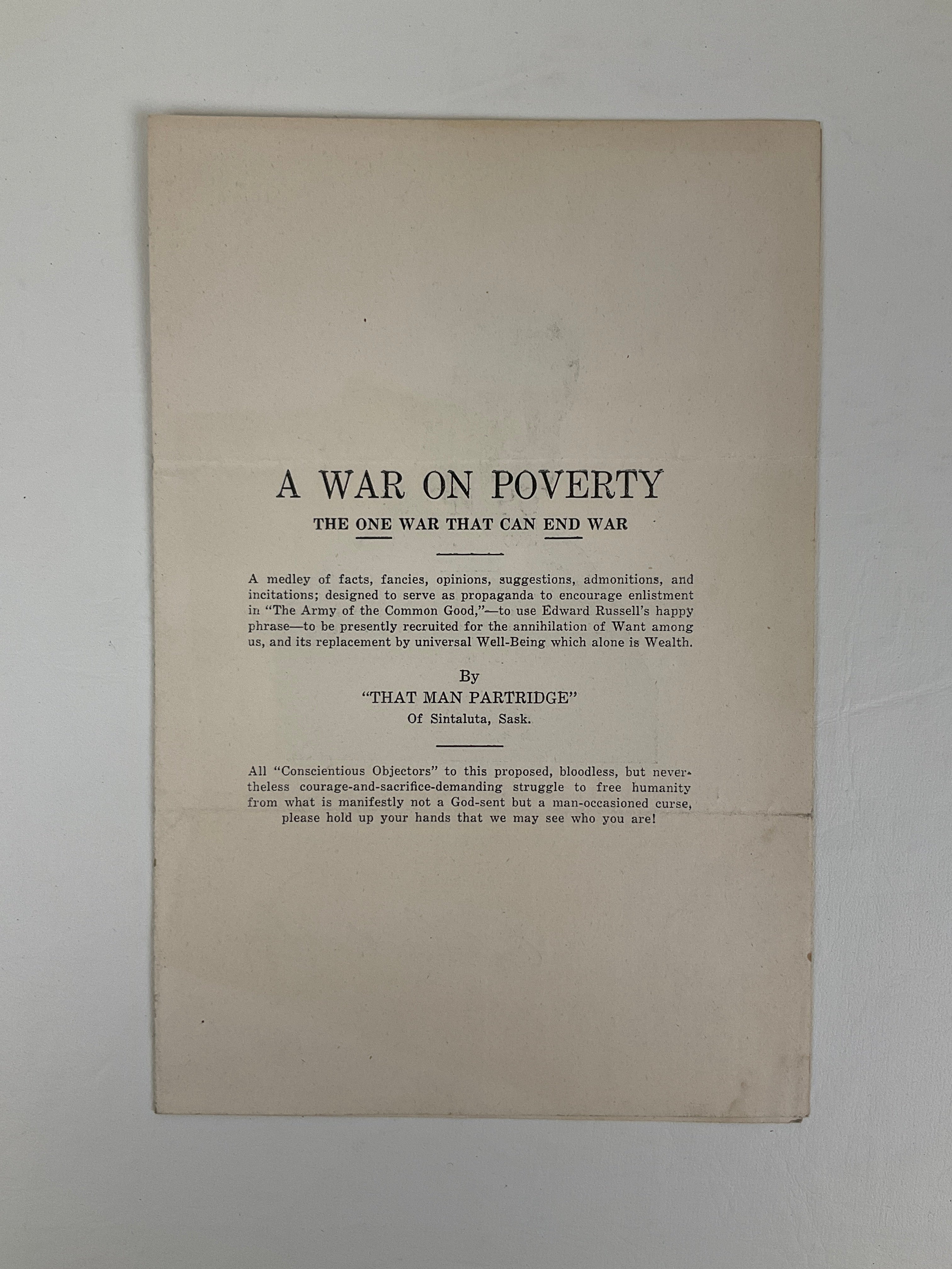 A War On Poverty : The One War That Can End War