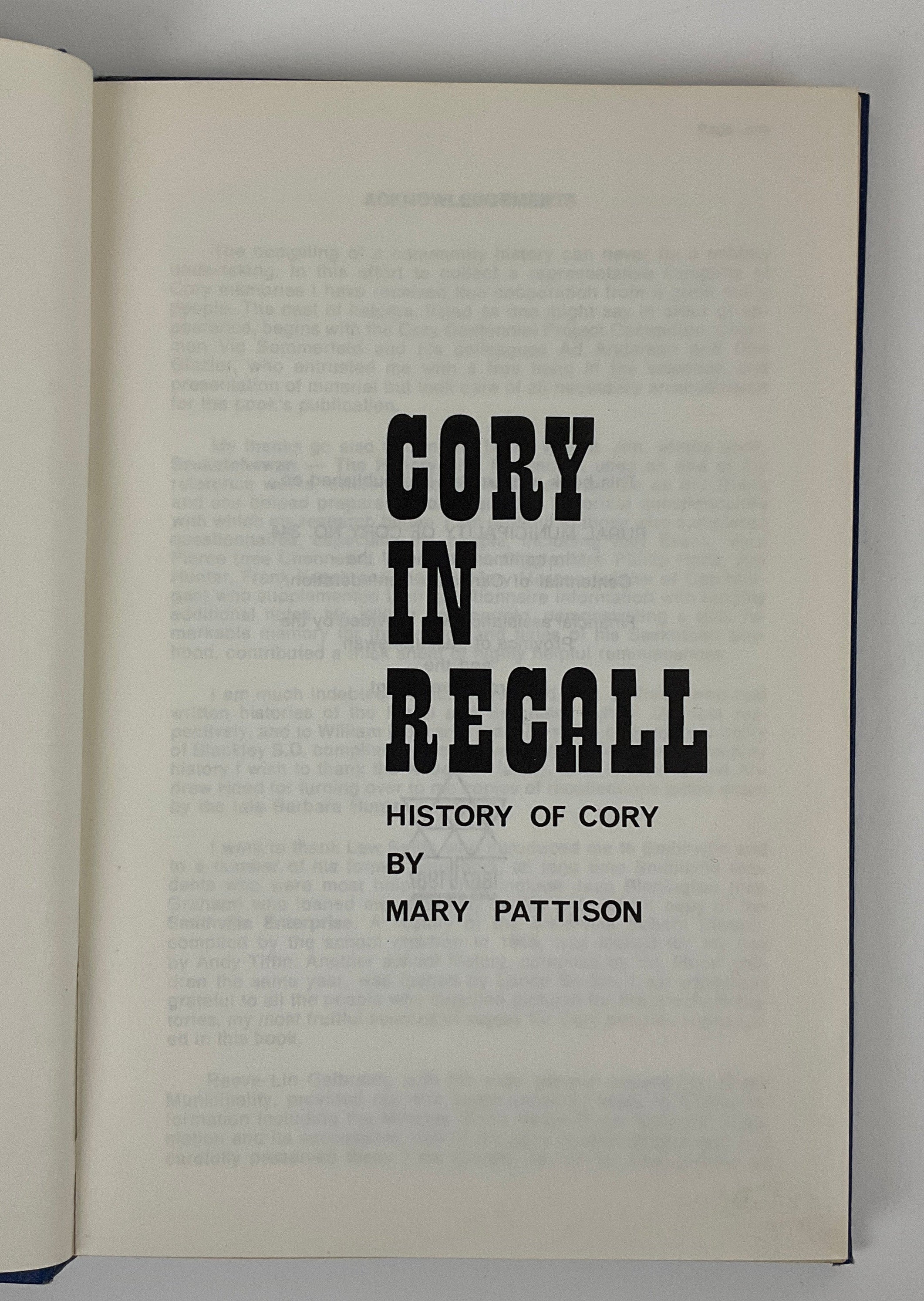 The Centennial Committee of Saskatchewan’s Rural Municipality of Cory #344 (now part of the Rural Municipality of Corman Park #344, surrounding Saskatoon) commissioned prolific CBC radio drama author Mary Pattison to write this municipal history. Pattison divides the region’s history into three overlapping periods, running from the early 1880s until 1967. She recounts the arrival of pioneers, the establishment of homesteads, and the growth of local infrastructure, articulating regional themes in development through stories of individual families. Includes 22 x 25 cm (8.5 x 10 in) fold-out map. No publication date indicated, but the"Acknowledgements" section's 1967 dating suggests a publication year of 1967 or later.