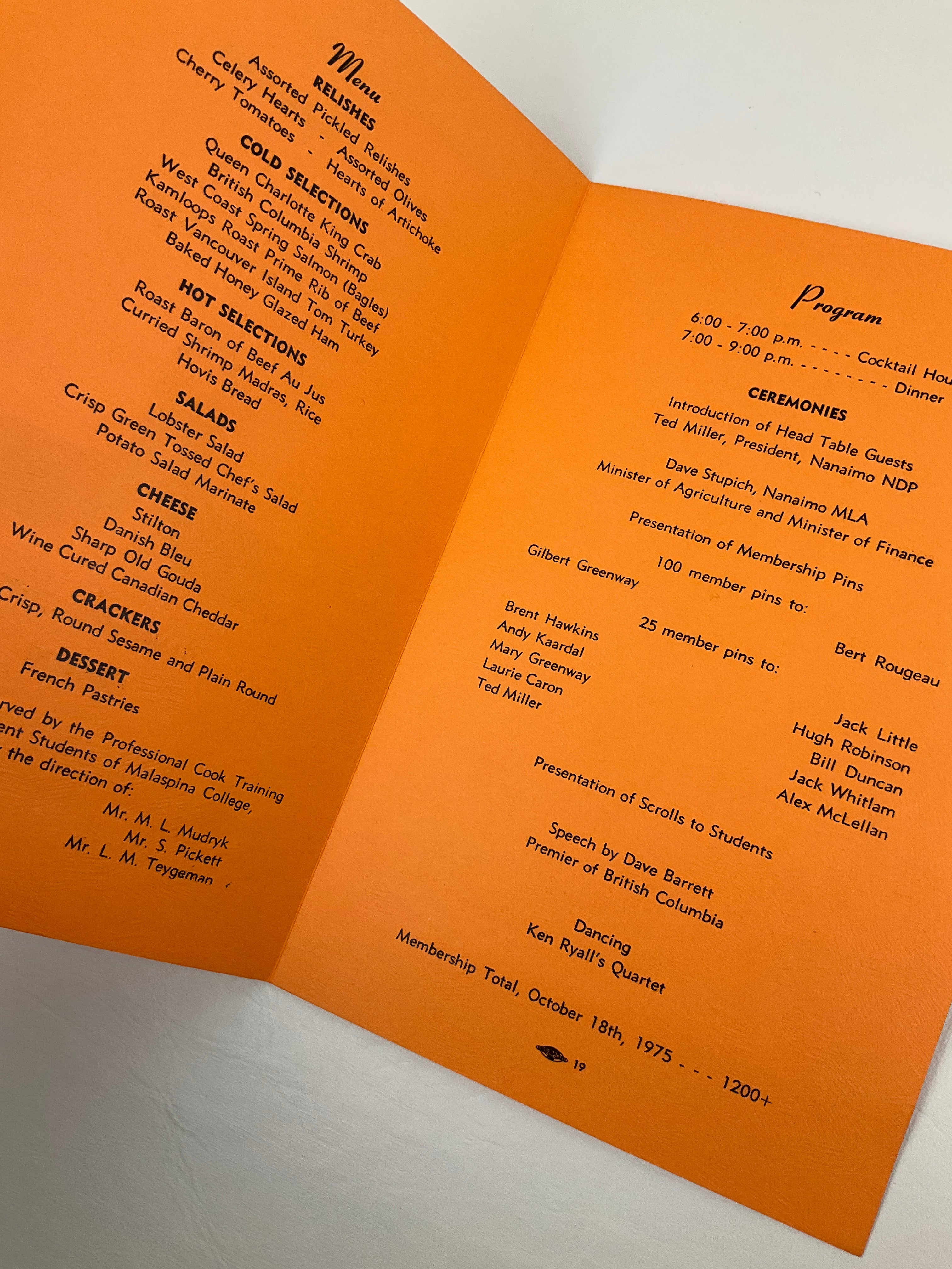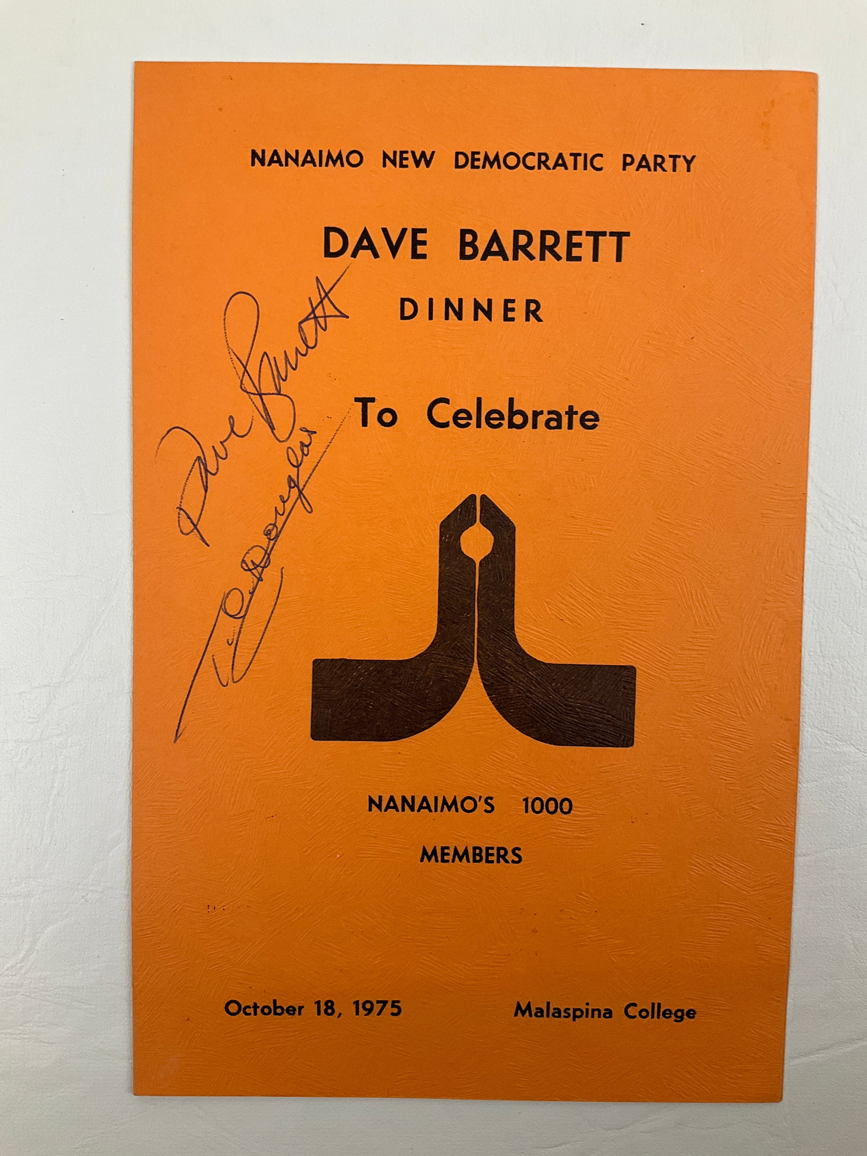 (1). Nanaimo New Democrat Party: Dave Barrett Dinner, to Celebrate Nanaimo’s 1000 Members.