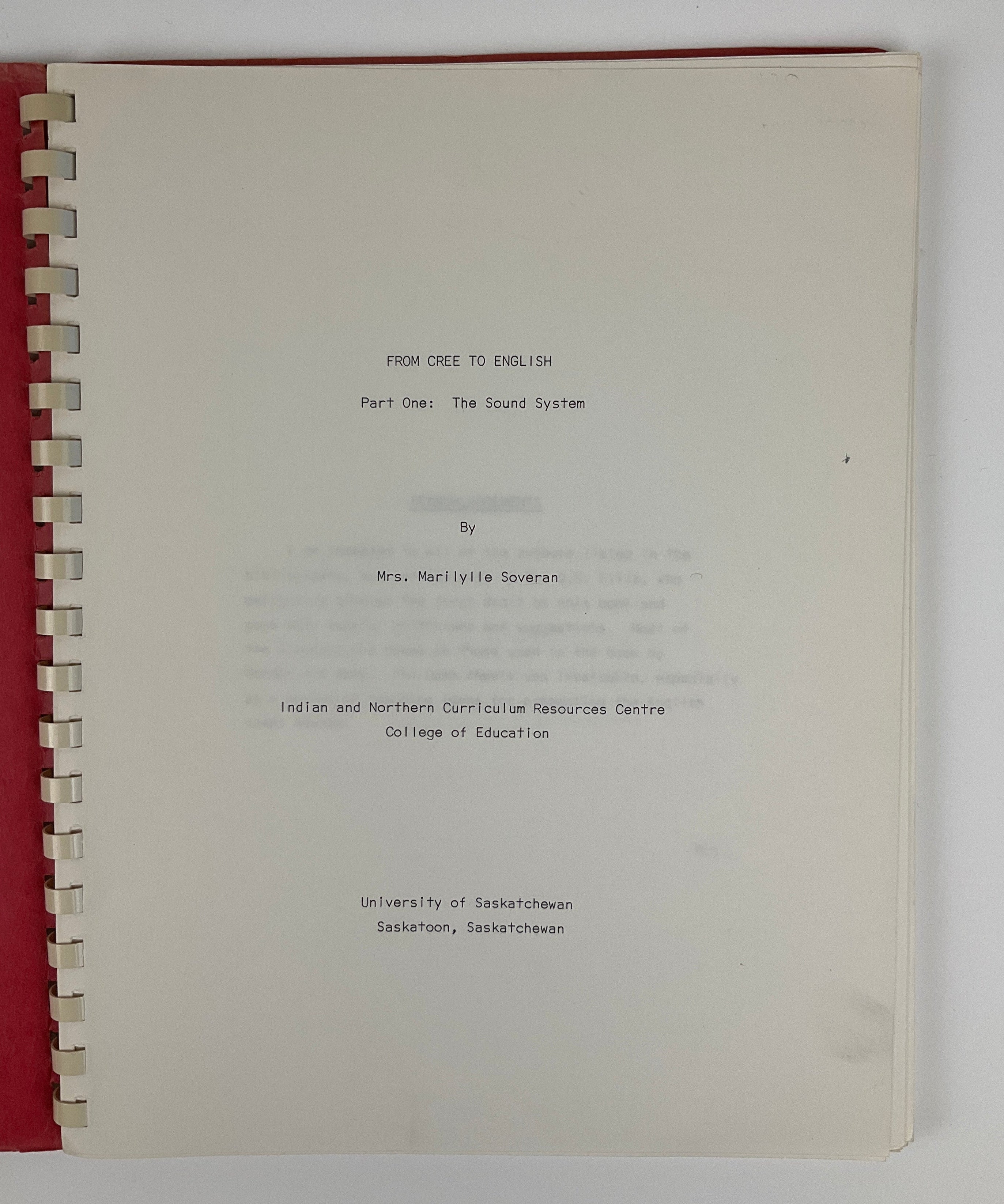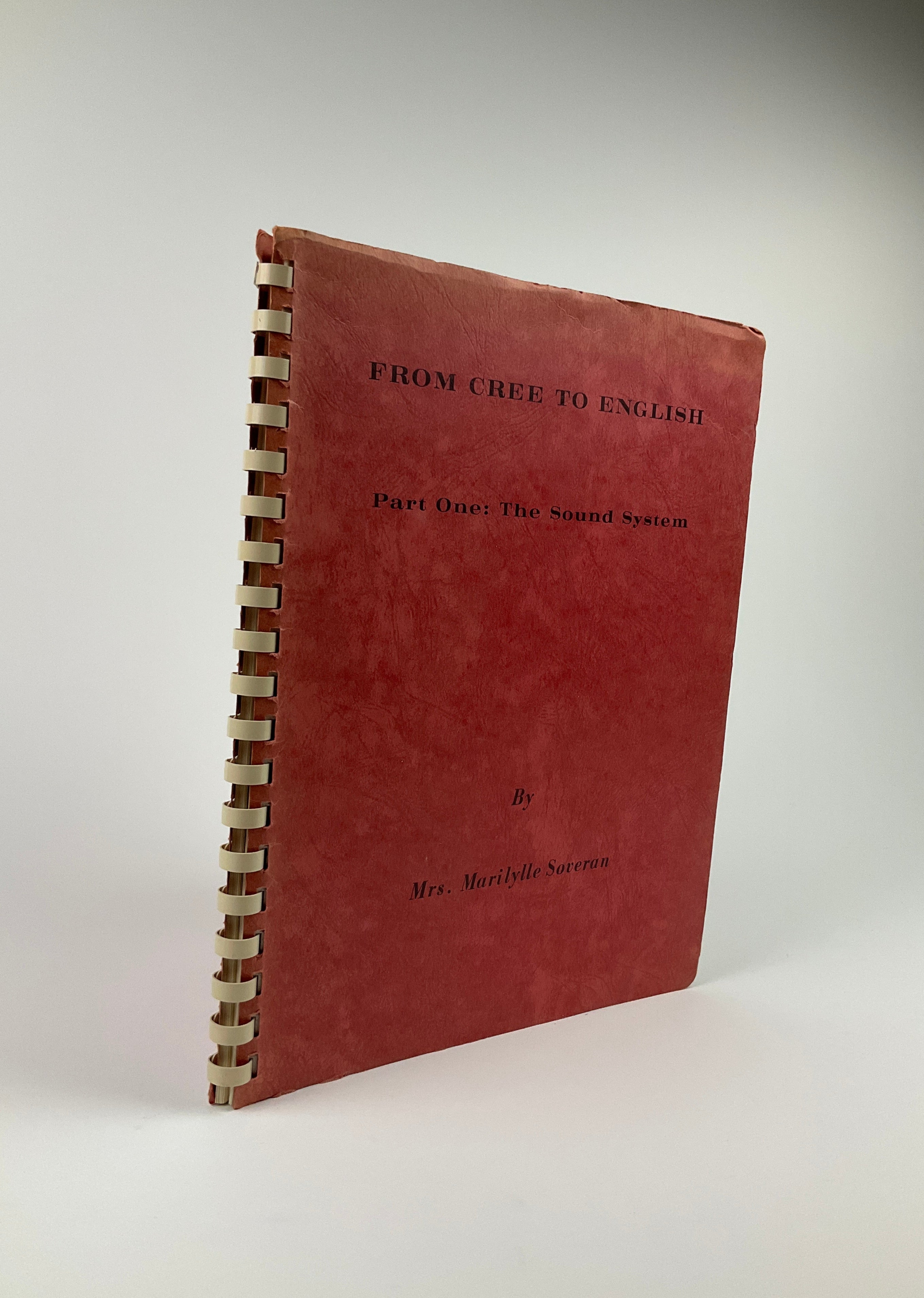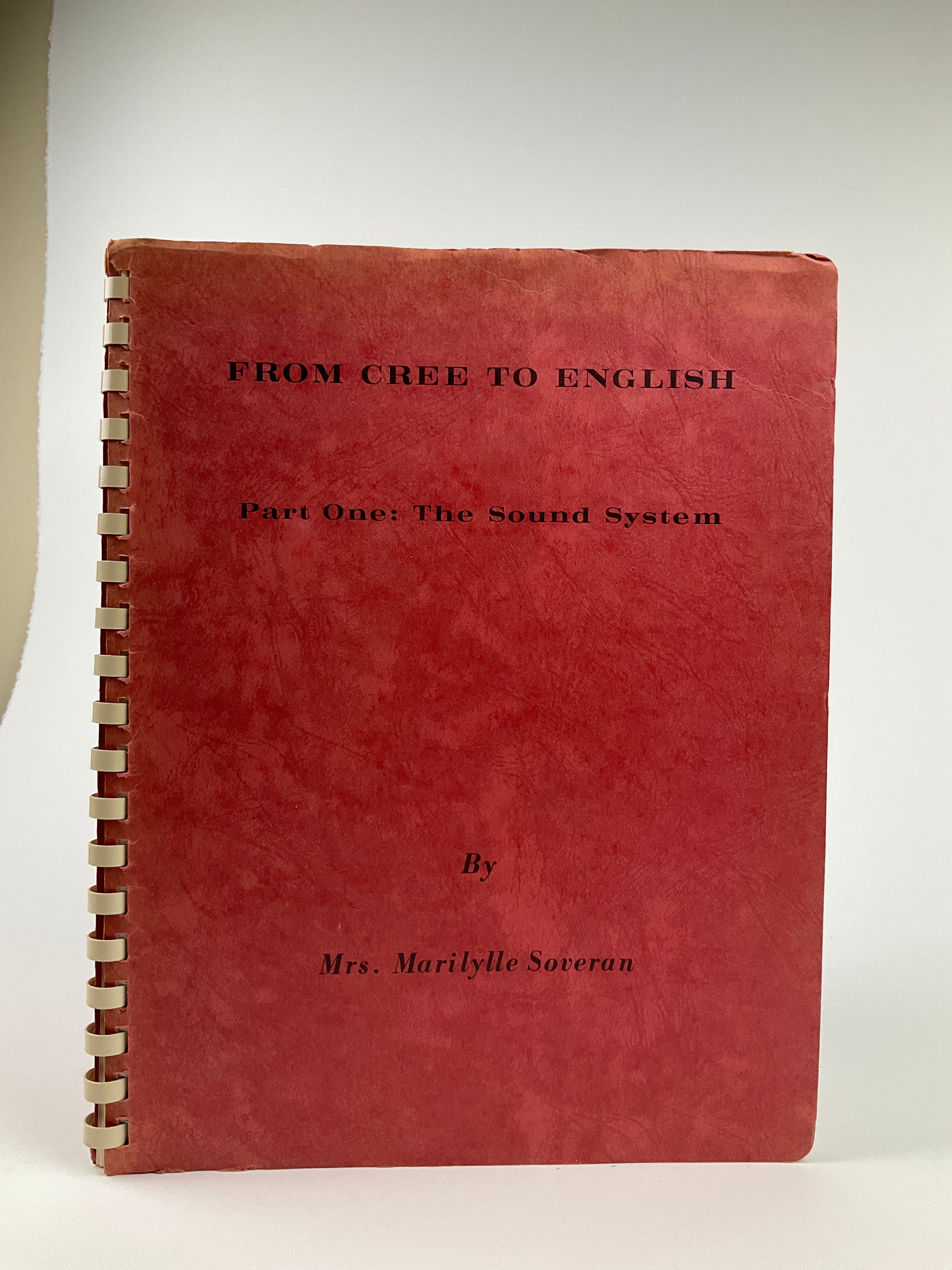 Written by Canadian author/educator Marilylle Soveran for the University of Saskatchewan's Indian and Northern Curriculum Resources Centre, this volume provides an instructional comparison between English and Cree (Plains dialect) sound systems to help Cree speakers become comfortable using English sounds. The book contains educational instructions, pronunciation drills, and facial diagrams illustrating how to produce certain sounds. Text is in English. No publication date indicated, but the bibliography's most recent entry is a 1962 book.