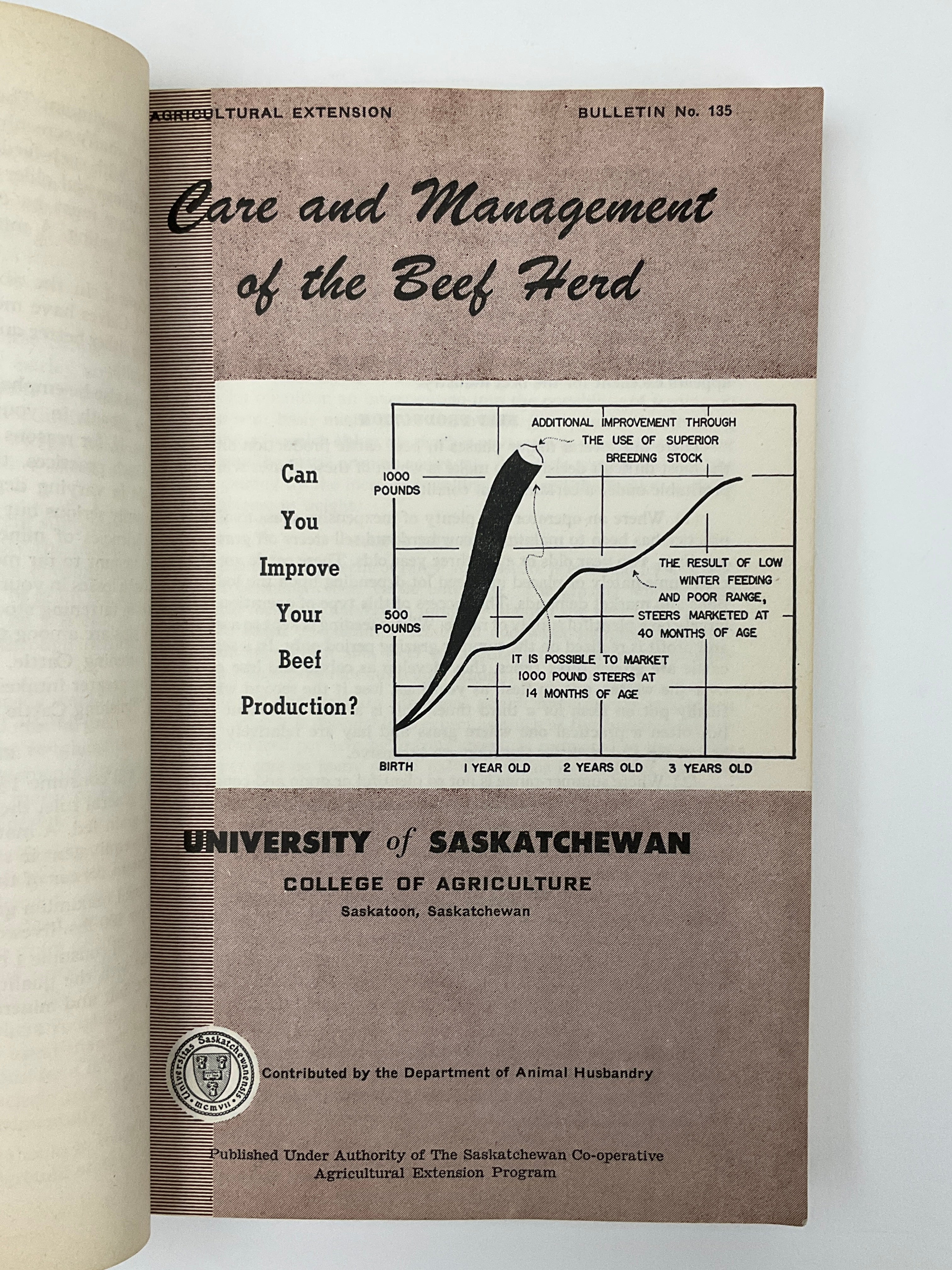 Gathers together a series of Bulletins written by the staff of University of Saskatchewan's, College of Agriculture. Grain, livestock, dairy poultry, horticulture production, farm equipment maintenance are the topics covered. Bulletins are all reprints, with original publication dates from the 20s through the 50s.