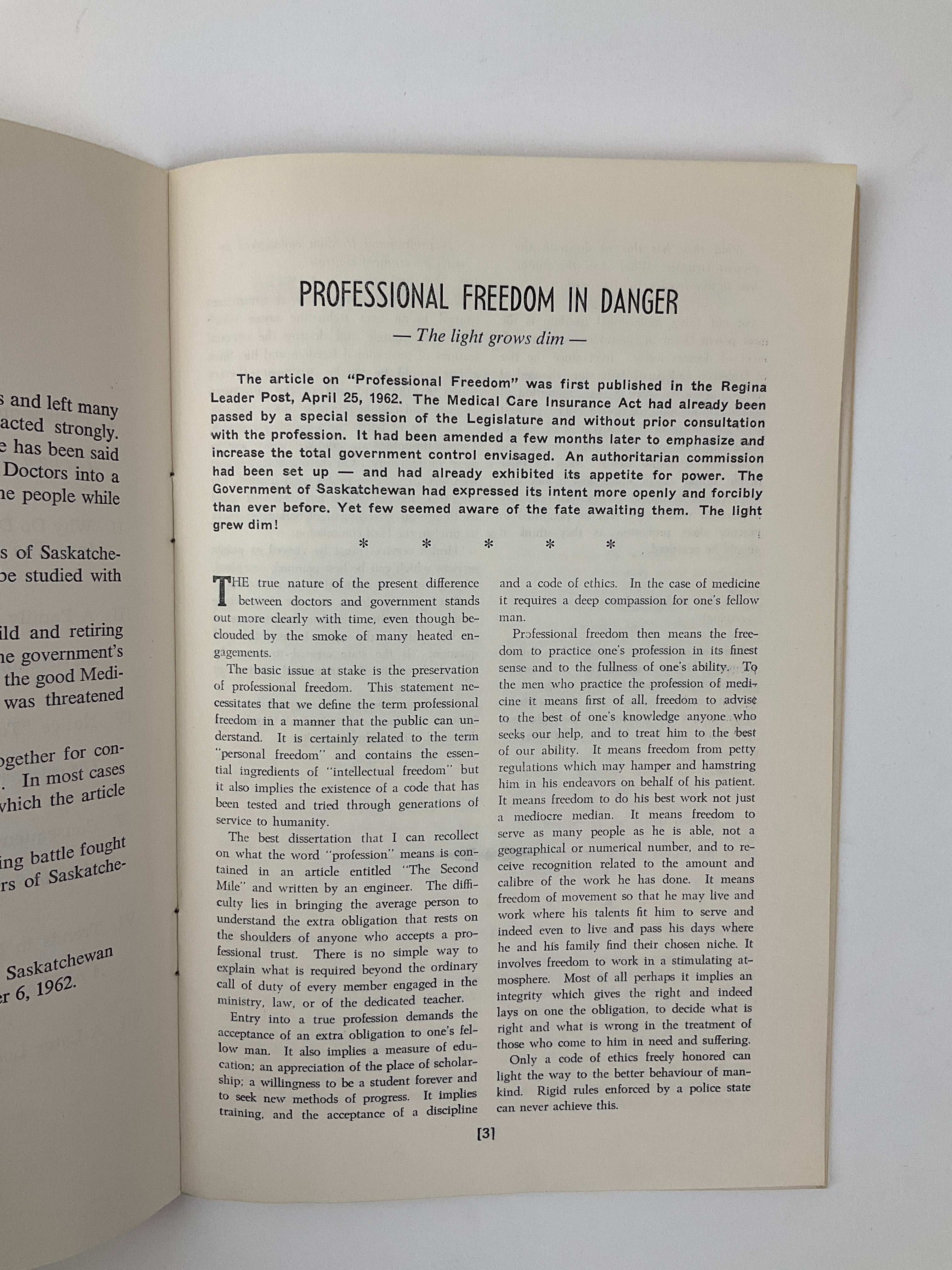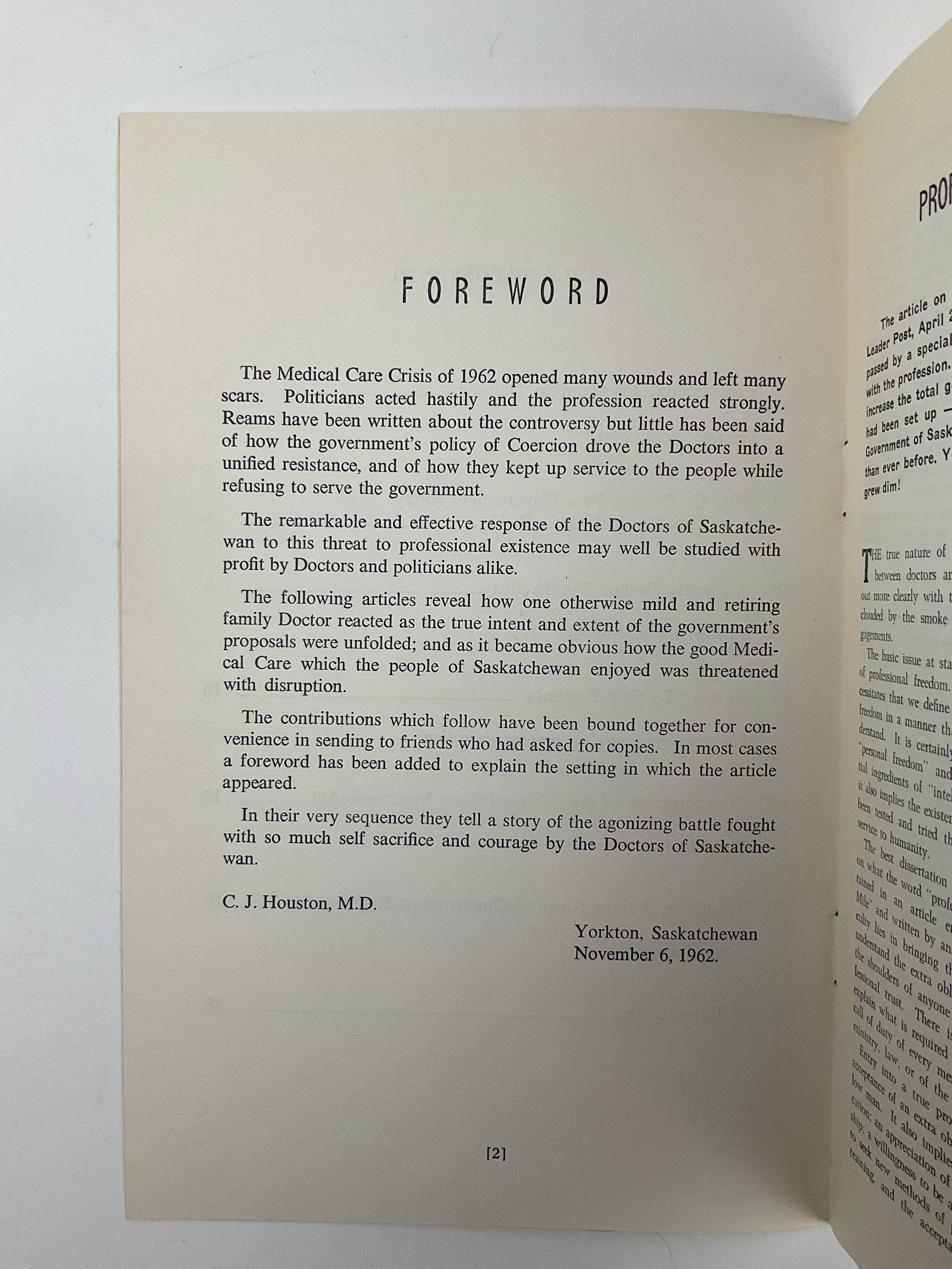 During the 1962 doctors' strike, C.J. Houston—a physician based in Yorkton—published several articles and delivered speeches concerning the Government of Saskatchewan’s Medical Care Insurance Act, the legislation introducing Medicare to the province. This pamphlet gathers together those writings.