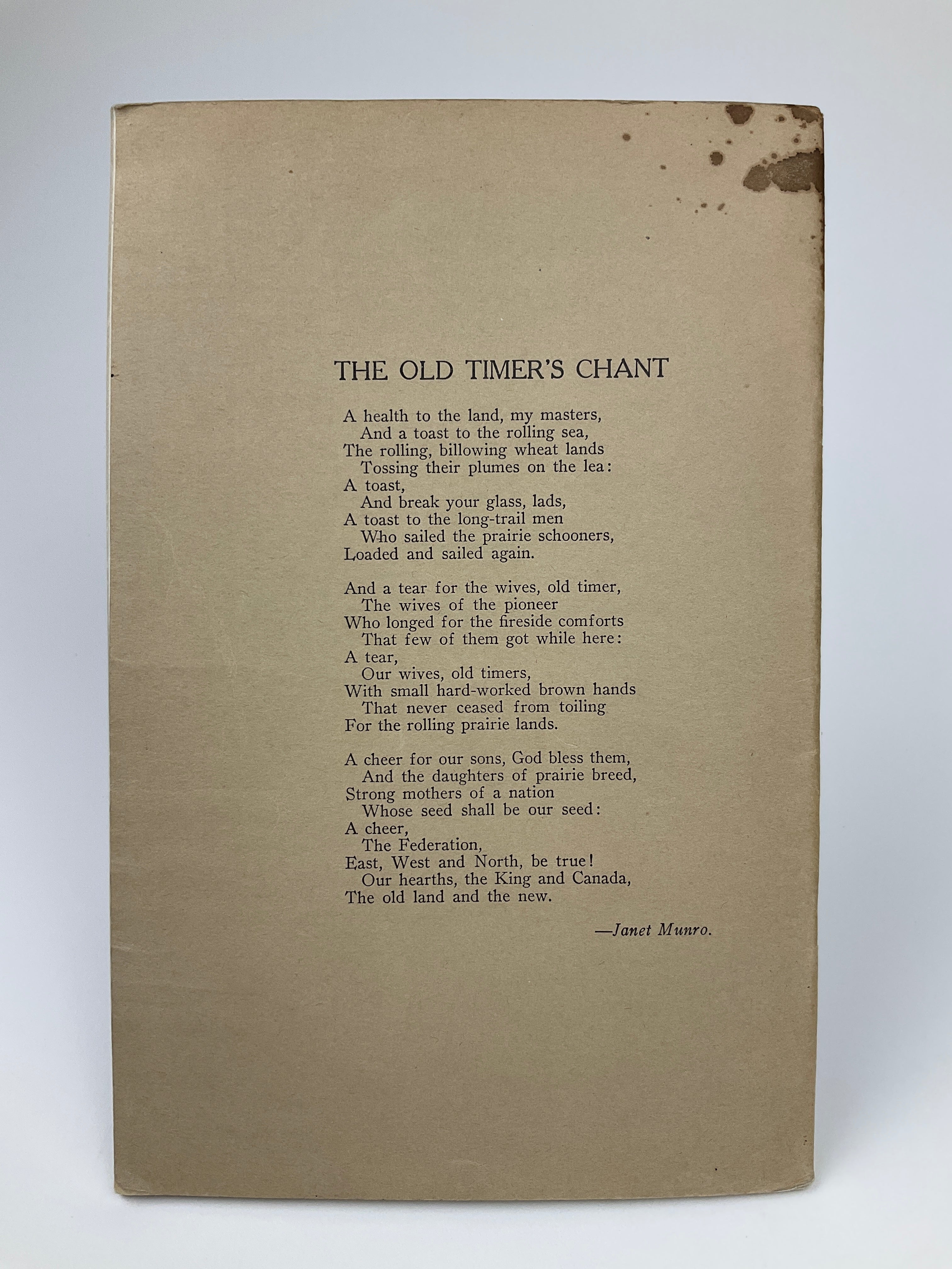 Covers stained at top along spine. Spine bumped at heel. Early pages and back cover recto stamped by previous owner. Tear to p.30 repaired, all text readable.