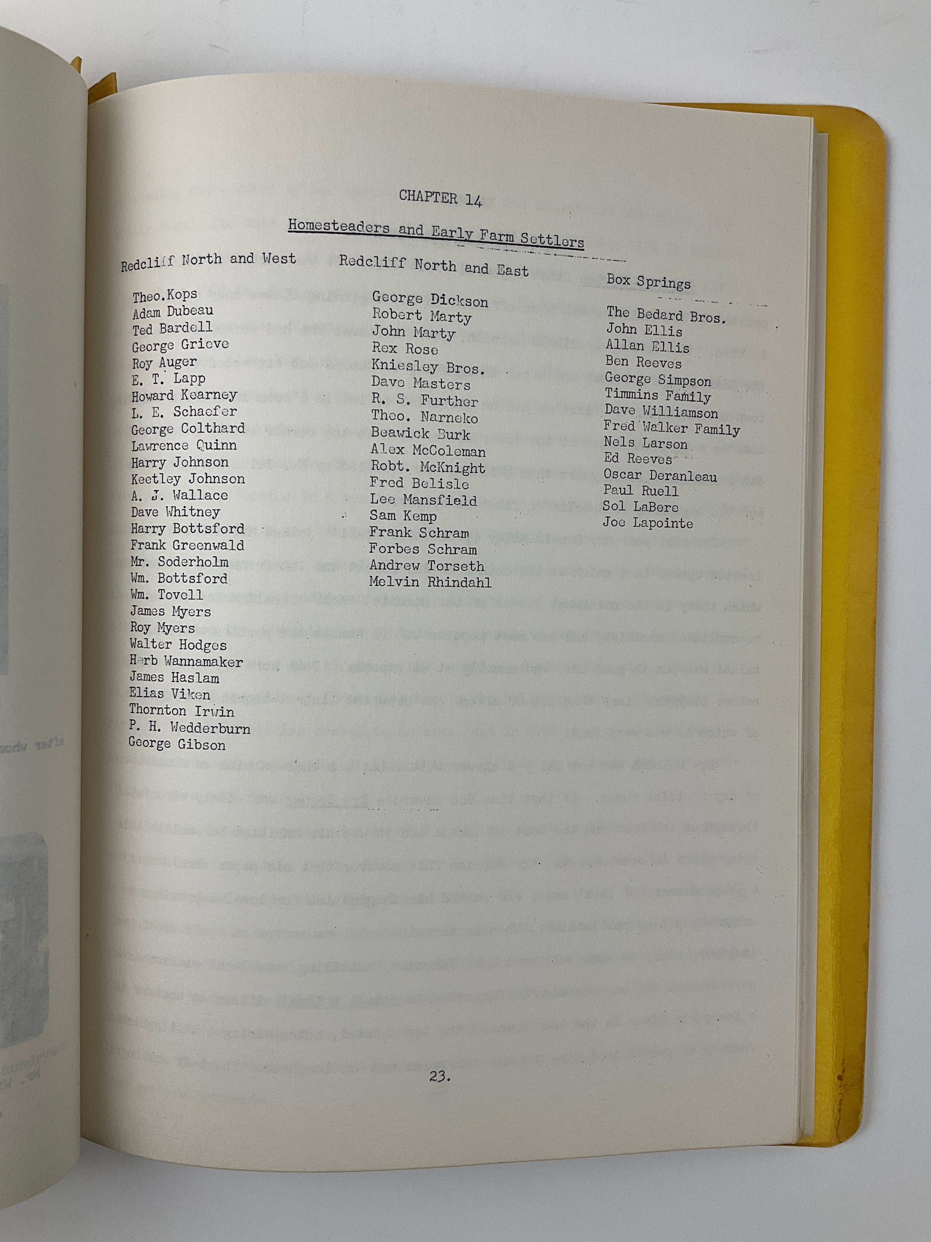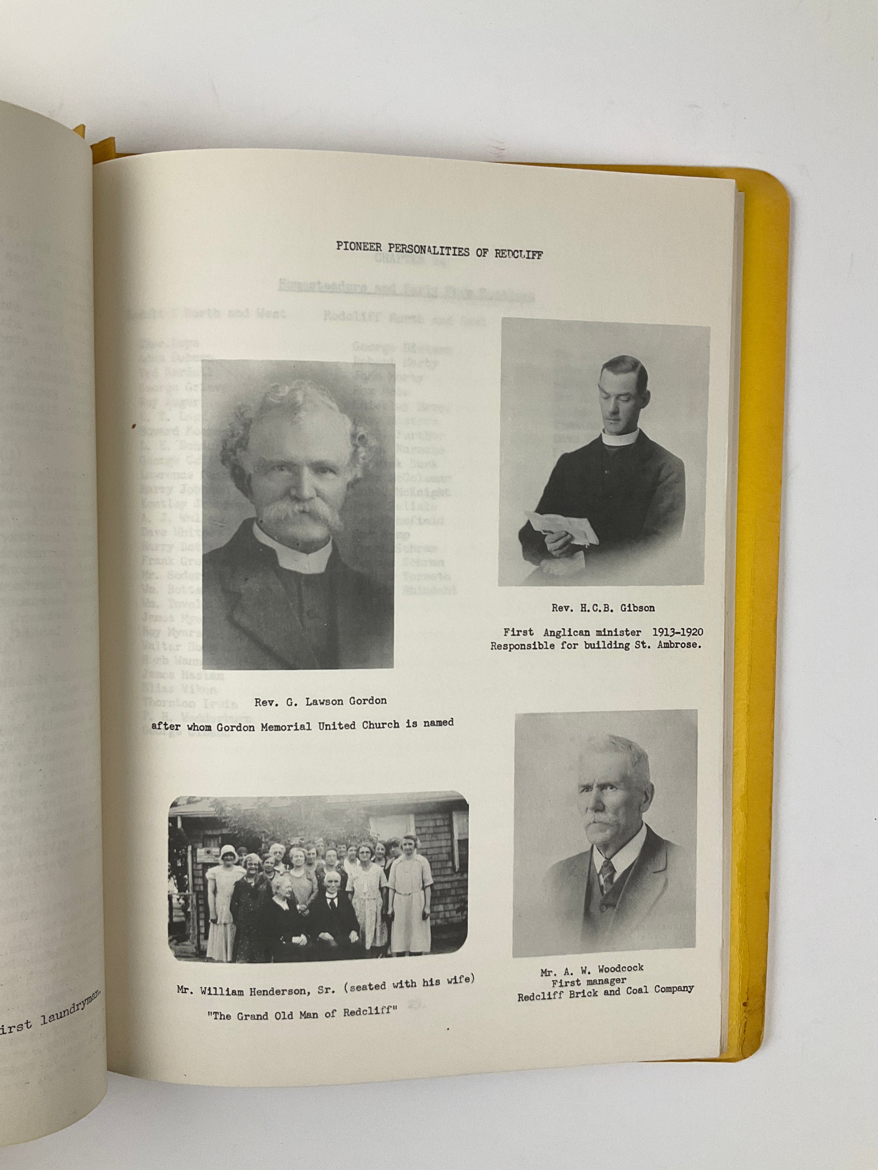 81 pages [80 pages paginated], gathered into a Duo-Tang folder, B&W photographs. Relevant "news clipping", "Souvenir Program of Redcliff's Golden Jubilee", and a program for the "Redcliff Golden Jubilee Thanksgiving Service", laid-in.