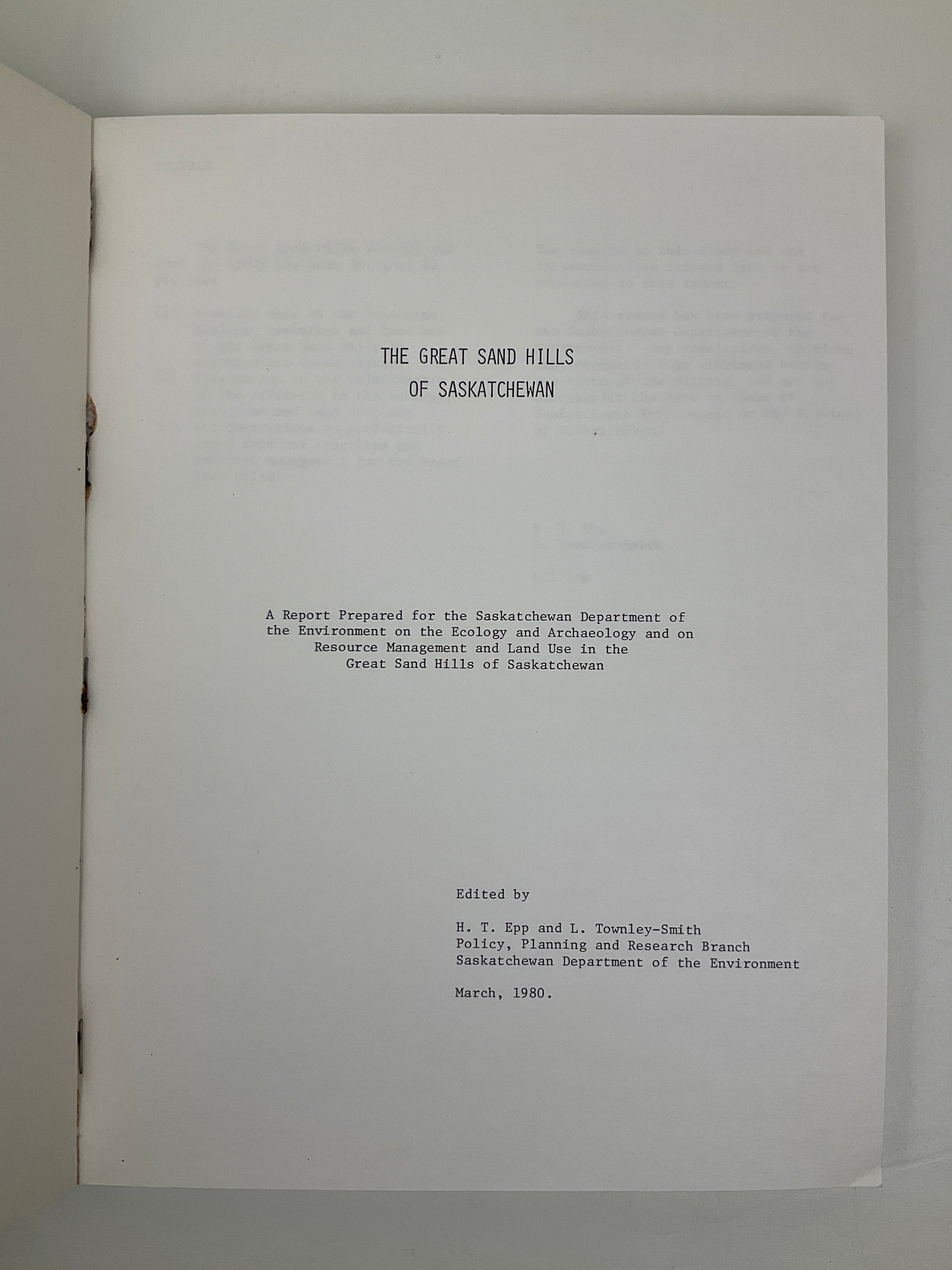 The Great Sand Hills Of Saskatchewan [An Ecological Study]