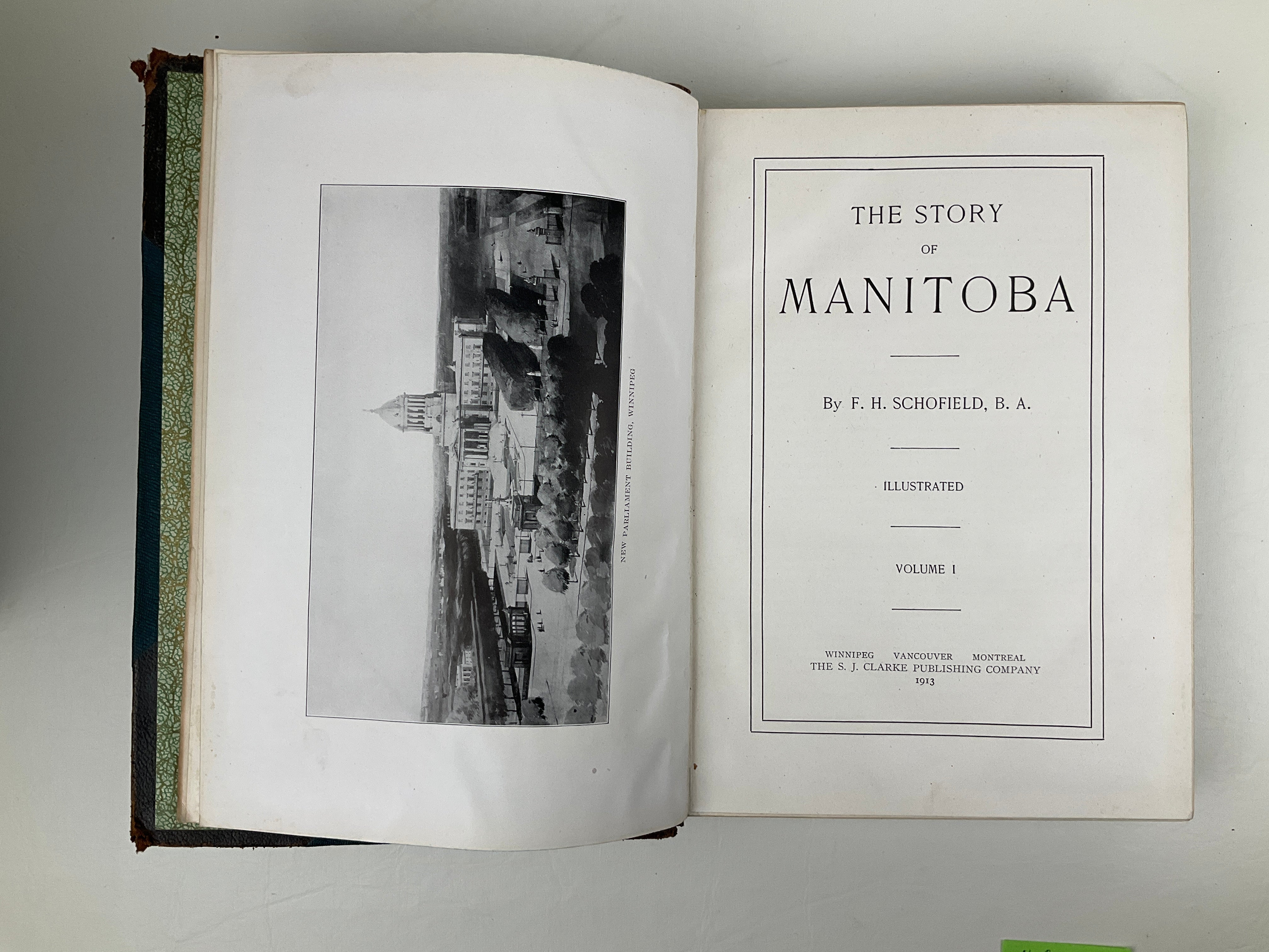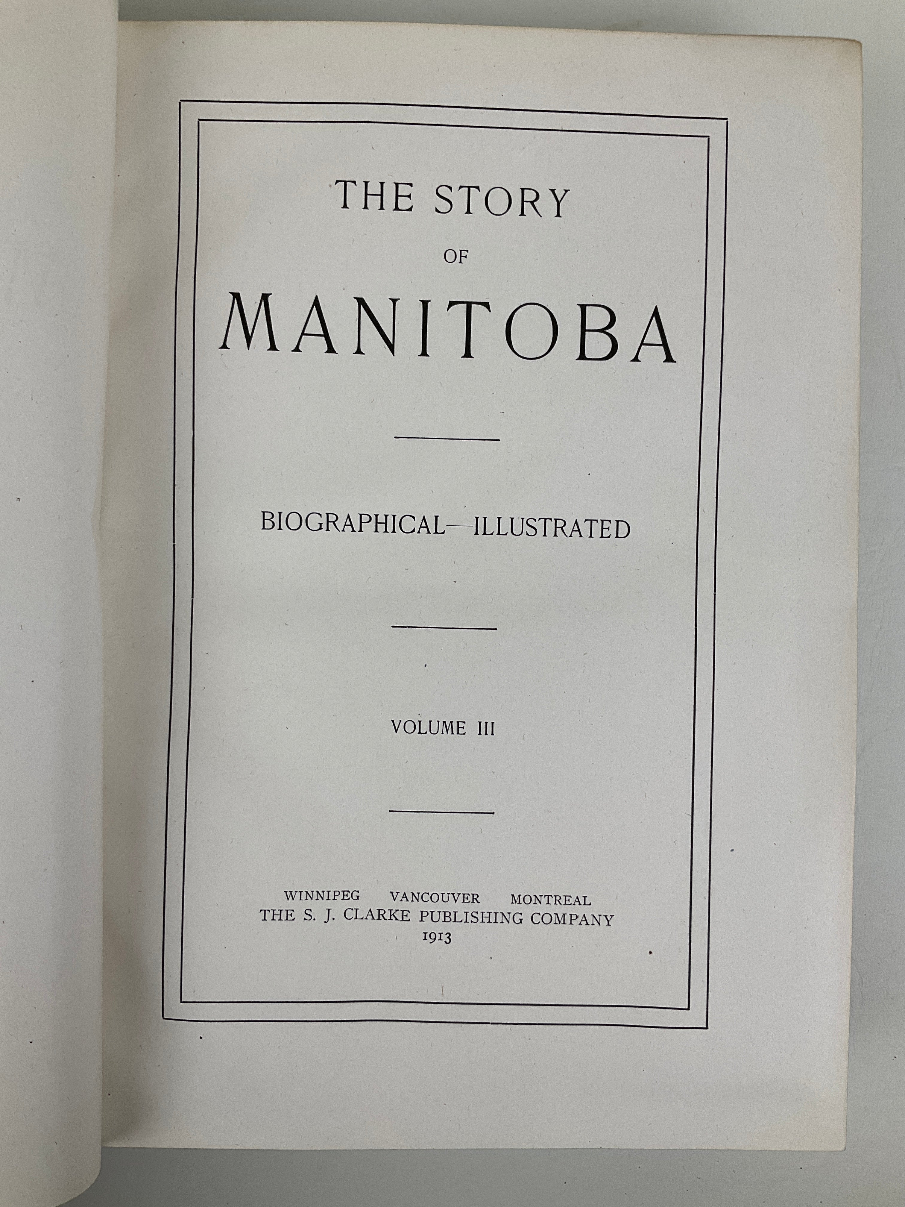 A provincial history issued by the S. J. Clarke Publishing Company, a firm well known for its subscription-based regional histories produced across Canada and the United States in the late nineteenth and early twentieth centuries. As with other Clarke publications, The Story of Manitoba follows the company’s characteristic model, combining a narrative survey of provincial development with extensive biographical material supplied by, or written about, subscribing citizens, resulting in both a historical record and a commemorative social register.