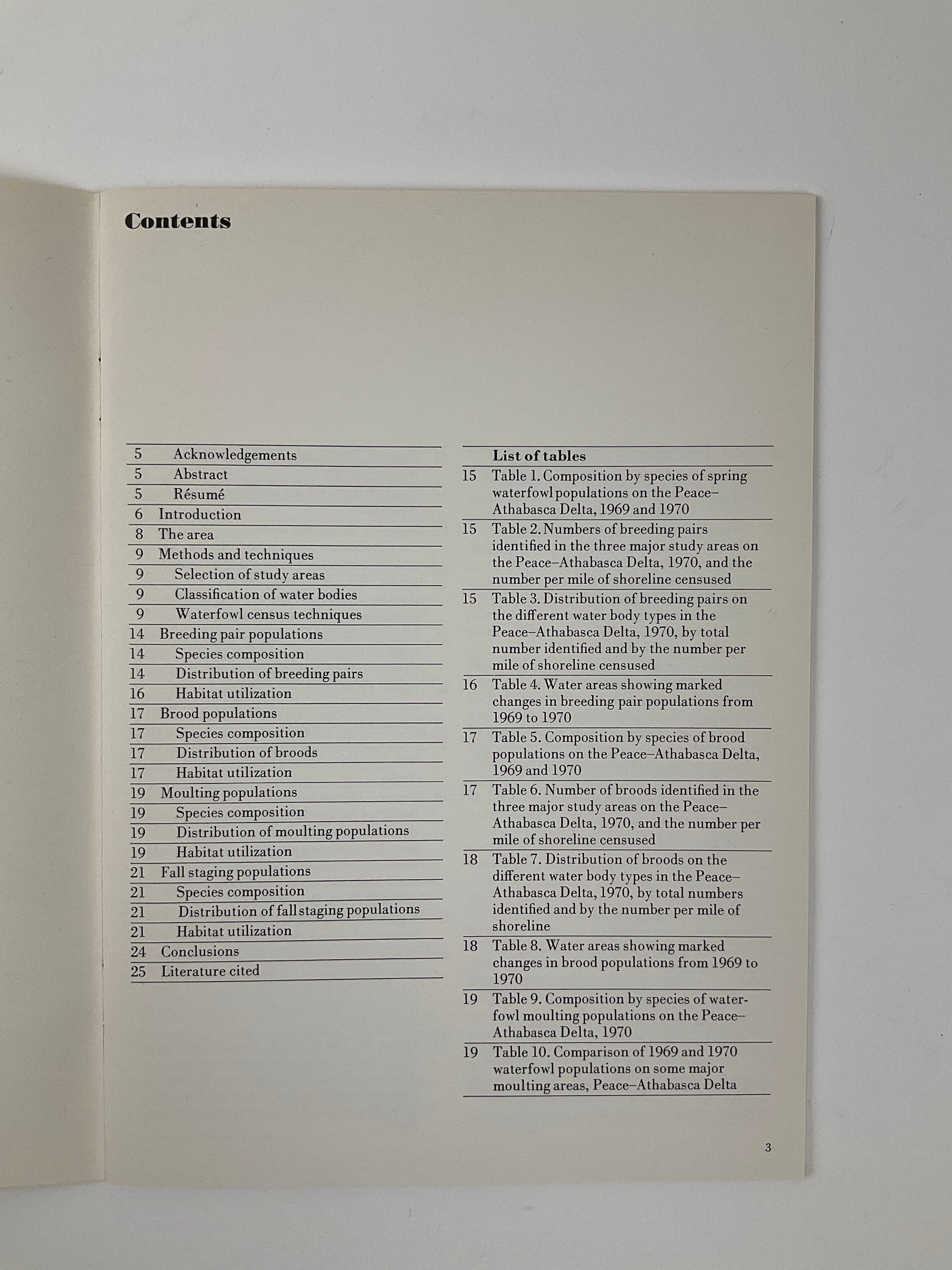 The delta supports large numbers of migrating, breeding, moulting and staging waterfowl, and acts as a refuge for prairie ducks displaced by drought. The habitat preferences of those populations were investigated with respect to their distribution during the breeding, moulting and fall staging activities. ..."