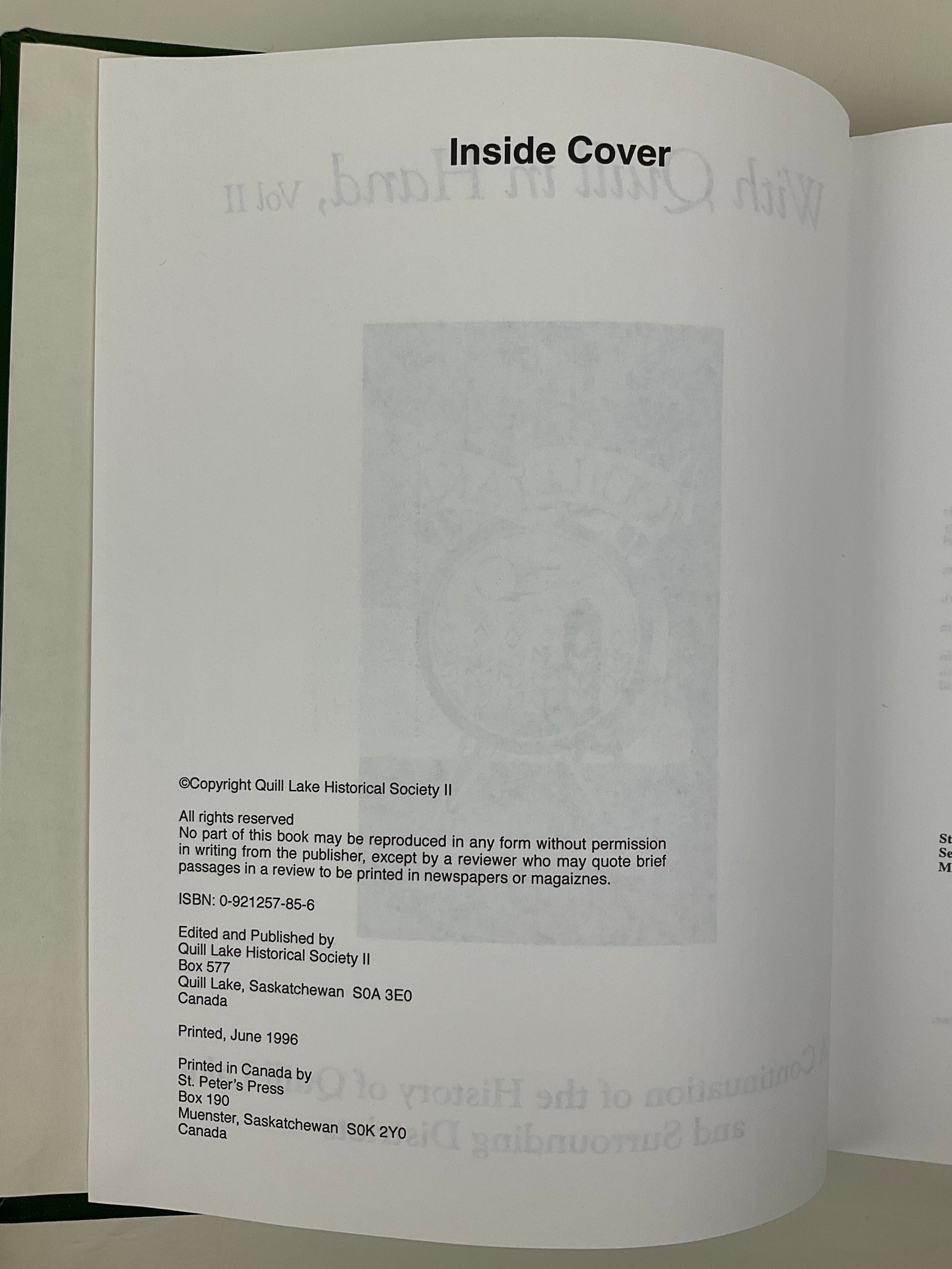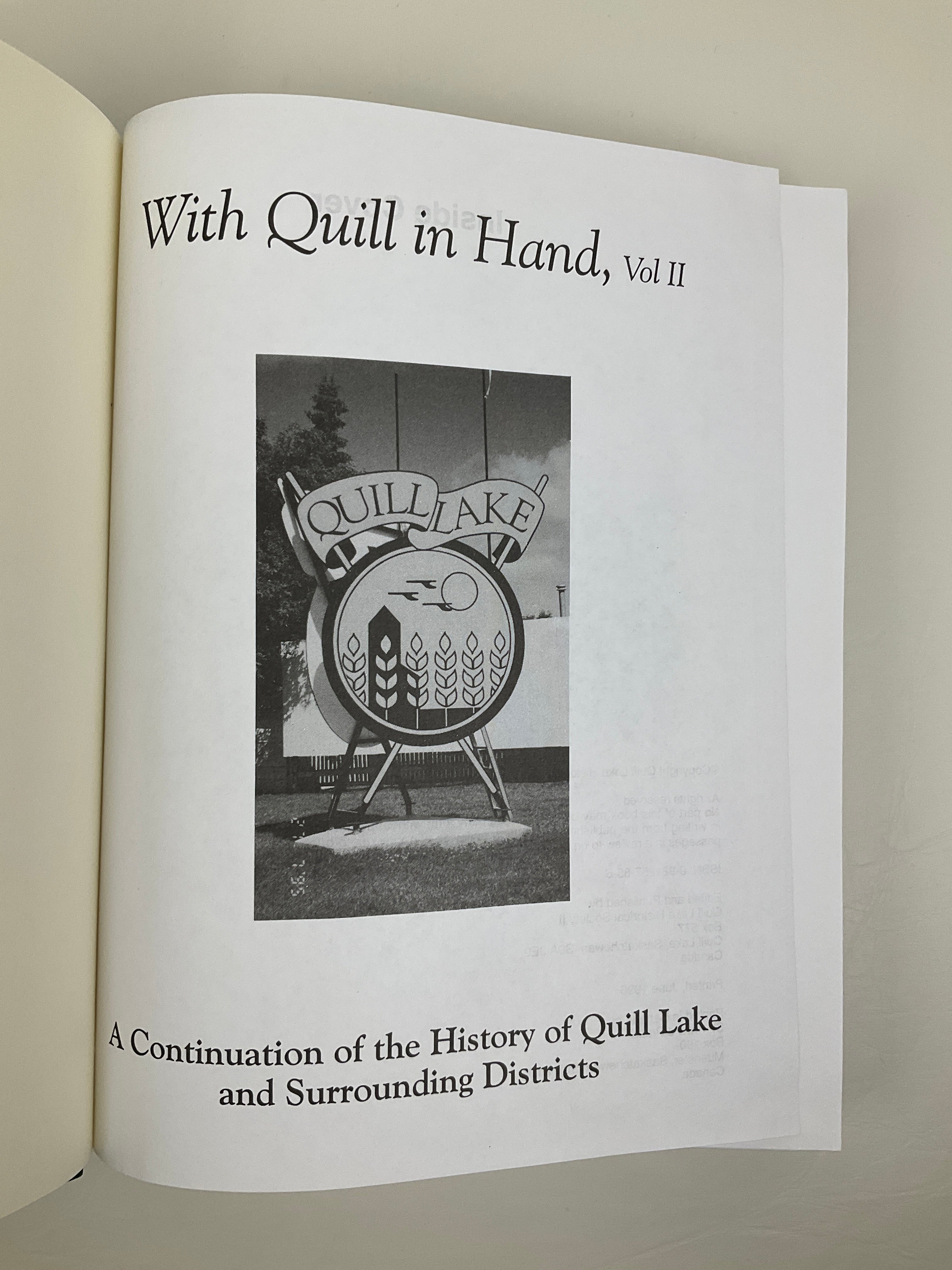 Volume Two: With Quill in Hand : Quill Lake and District 1983 - 1995. A Continuation of the History of Quill Lake and Surrounding Districts Published in 1996. A large potion is dedicated to family histories.